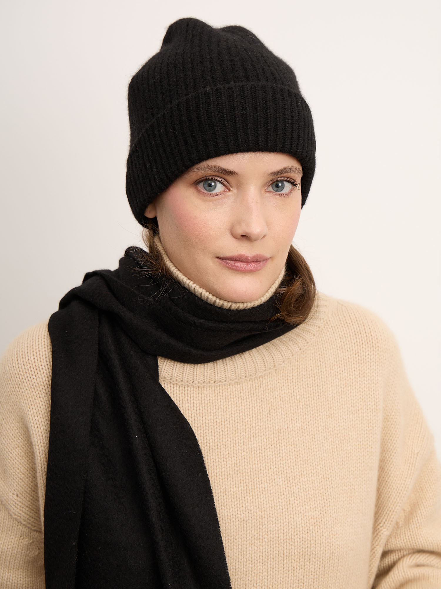 Шапка из кашемира в чёрном оттенке — это сочетание тепла, долговечности и безупречного стиля, созданное для тех, кто ценит качество и элегантность в каждой детали.