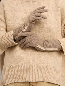 Перчатки выполнены из тонкого кашемирового полотна с декоративной вставкой и аккуратными пуговицами вдоль запястья. Модель выглядит изящно и женственно, сохраняя при этом функциональность и практичность. Мягкие манжеты обеспечивают удобную посадку, не стягивая кисть.