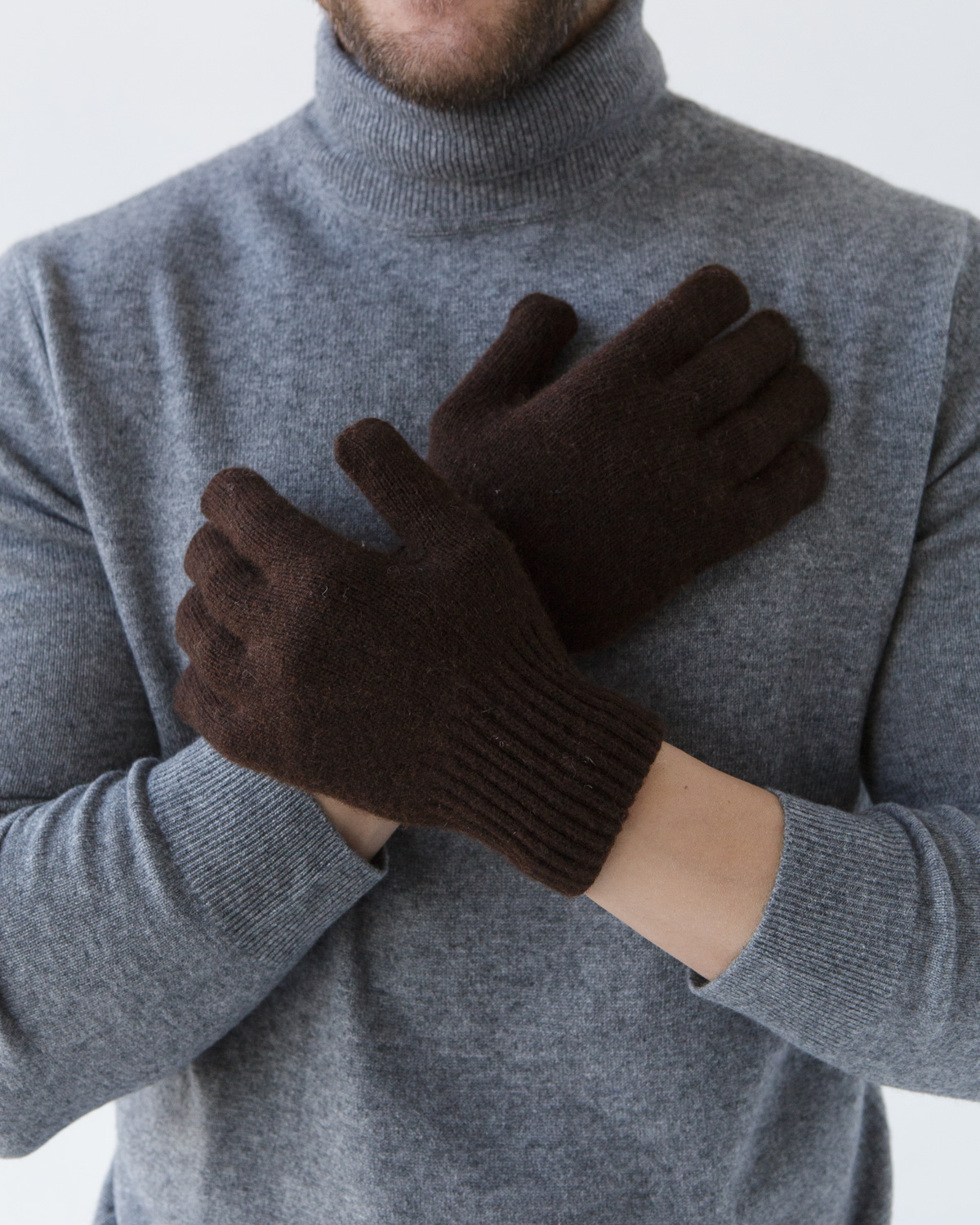 Теплые перчатки из монгольской шерсти темно-коричневые