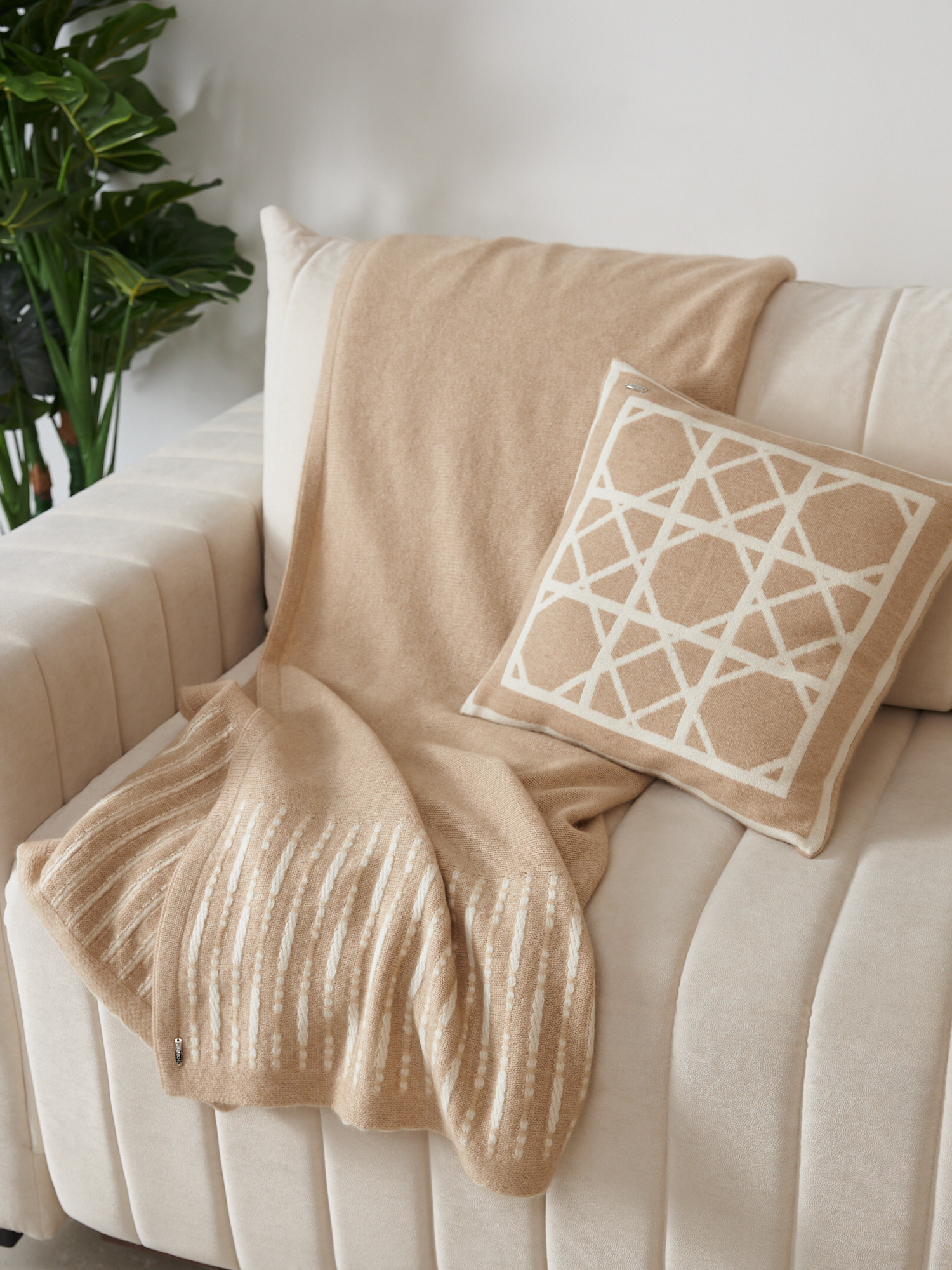 Почувствуйте мягкость, к которой хочется прикасаться снова и снова. Декоративная наволочка из кашемира в благородном бежевом оттенке с изящным геометрическим рисунком создает атмосферу уюта и спокойствия в интерьере. Натуральный кашемир отличается исключительной нежностью, легкостью и способностью сохранять комфортное тепло, превращая пространство в зону расслабления и комфорта. Практичная застежка на молнии делает использование удобным и аккуратным, сохраняя эстетичный внешний вид изделия.