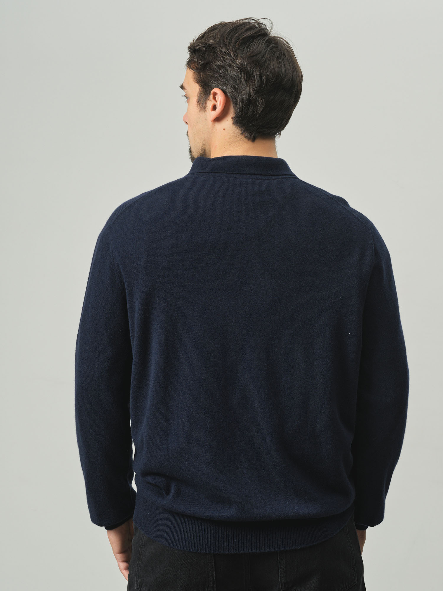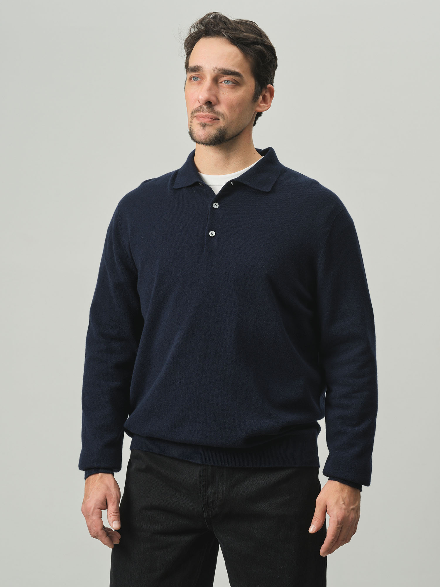 Джемпер-поло из кашемира мужской KM010140-E темно-синий