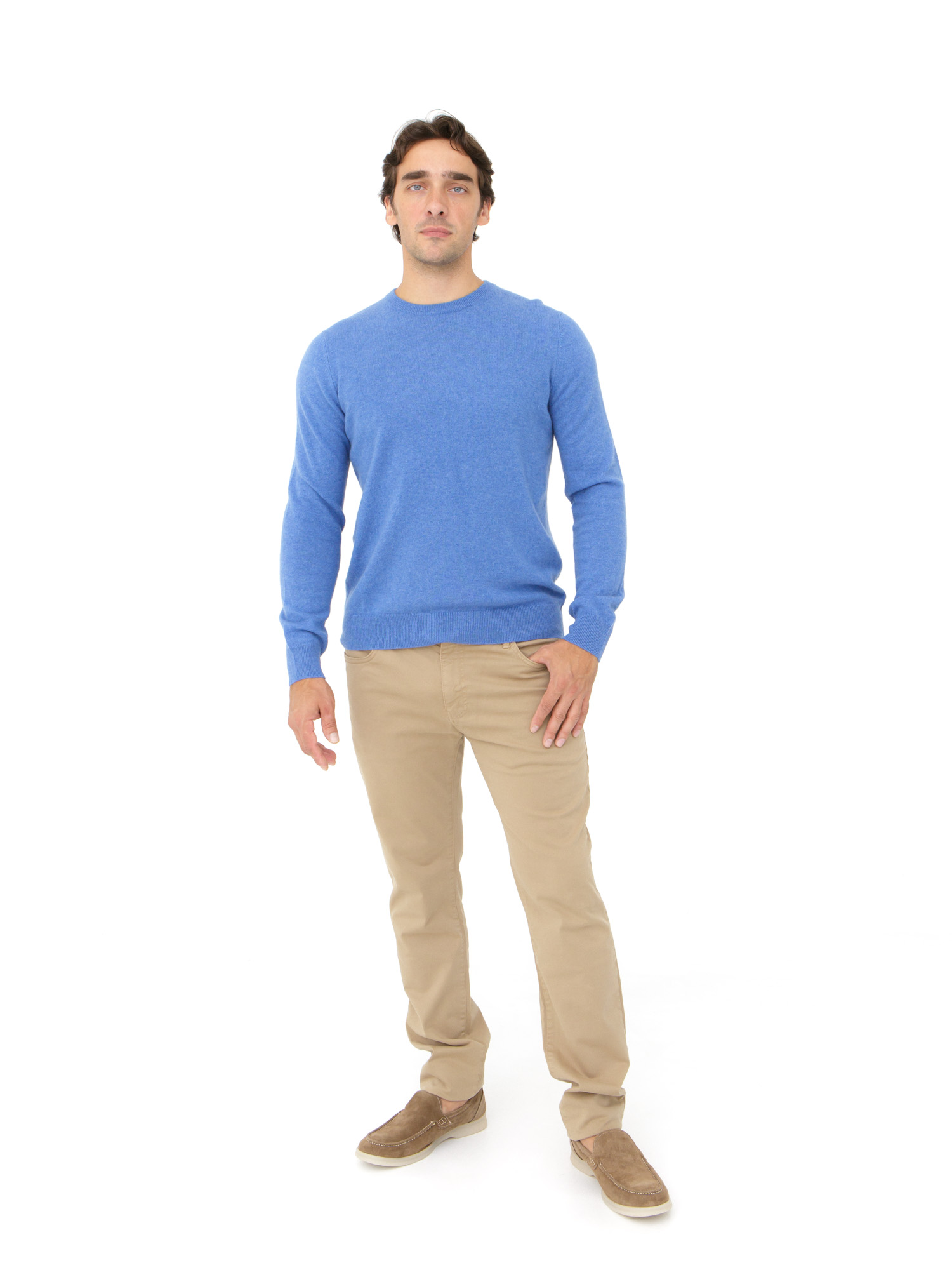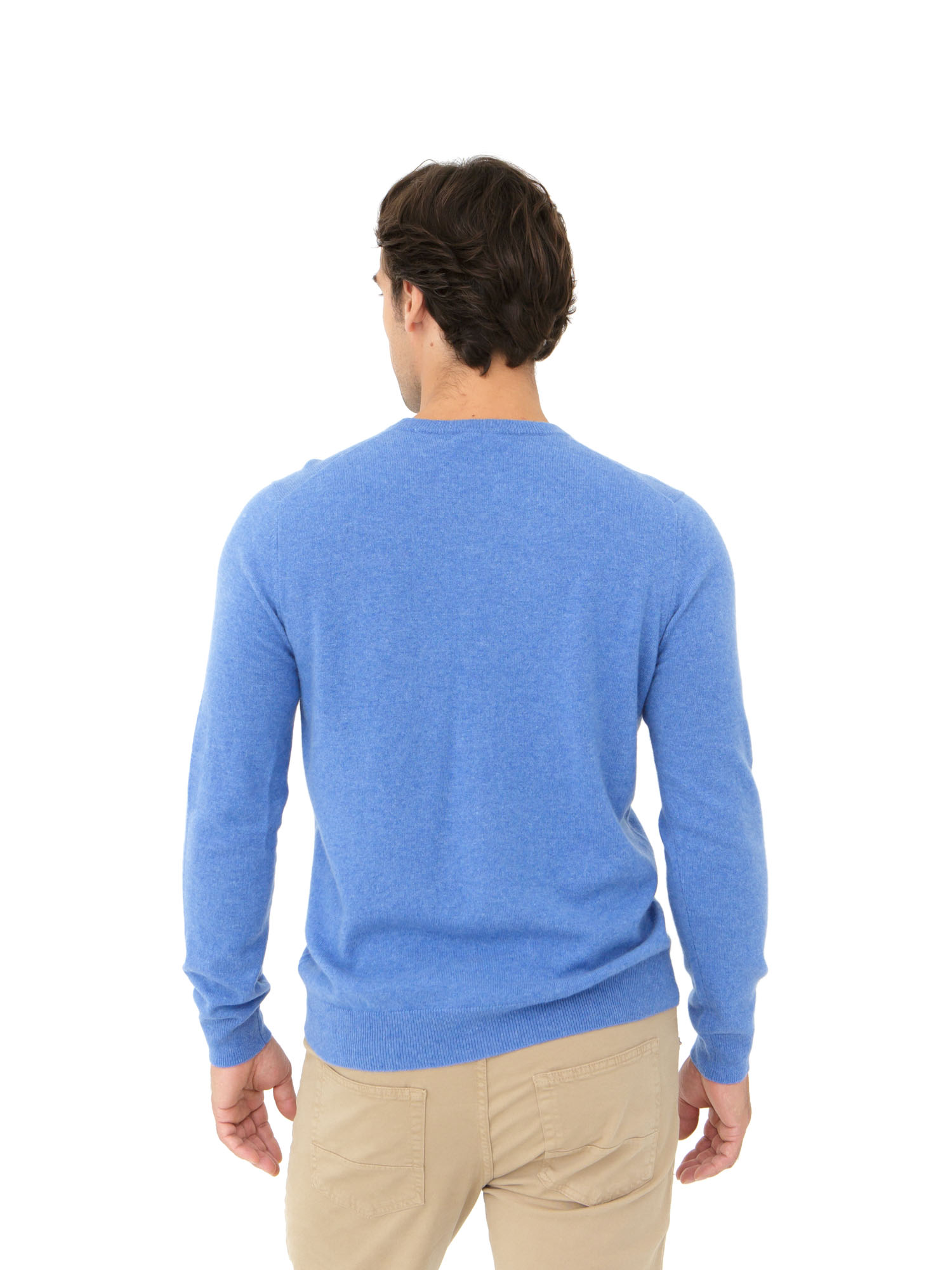 Мужской джемпер из 100% кашемира глубокого синего цвета — идеальное сочетание благородной эстетики и непревзойденного комфорта. Натуральный кашемир премиум-класса, известный своей исключительной мягкостью и легкостью, обеспечивает превосходную теплоизоляцию без утяжеления, создавая идеальный микроклимат для тела даже в самую холодную погоду.