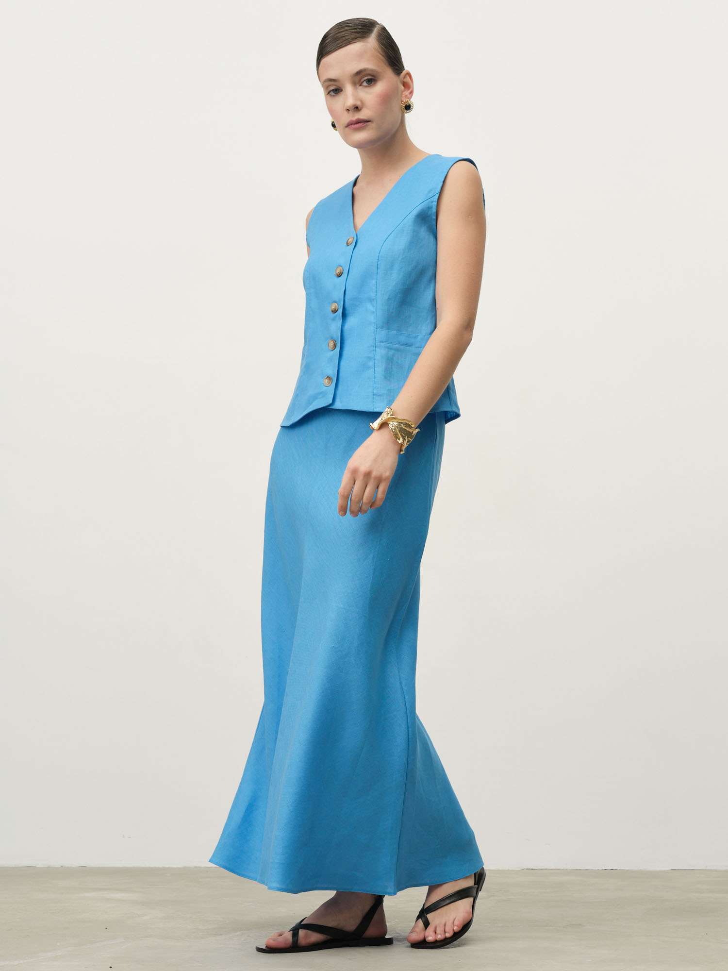 Отлично сочетается с топами, блузами и жилетами из льна. Подходит для летних, повседневных и элегантных образов.