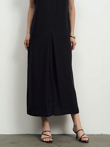 Боковые карманы, аккуратные швы, мягкая фактурная ткань, свободная посадка, не сковывающая движения, складка с разрезом спереди для дополнительного комфорта и свободы шага.