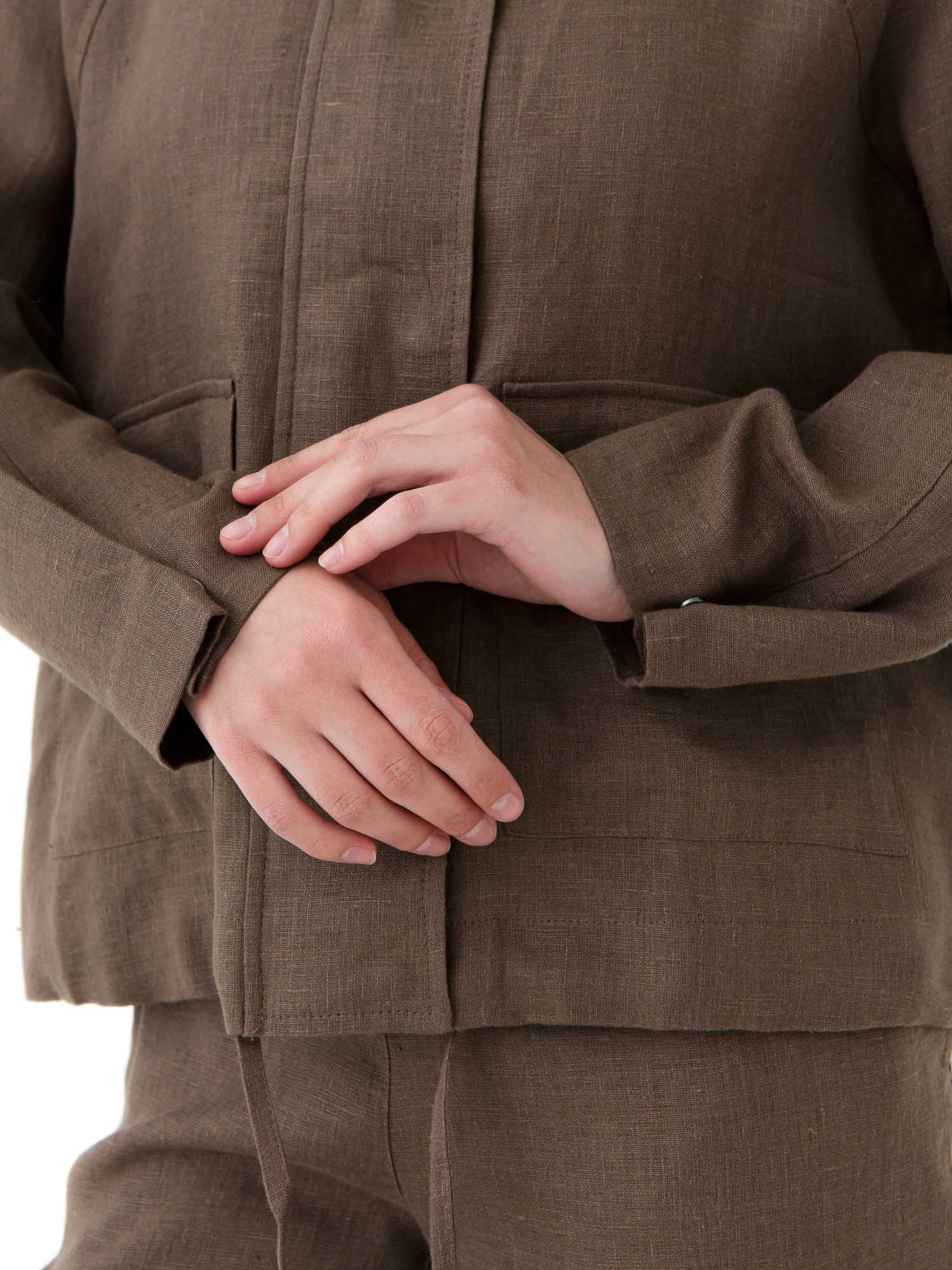 Жакет отлично сочетается с брюками, юбками и платьями. Можно носить как часть комплекта или как самостоятельный элемент гардероба. Подходит для повседневных образов, прогулок и путешествий. Сочетайте с кедами, сандалиями или обувью на низком ходу.