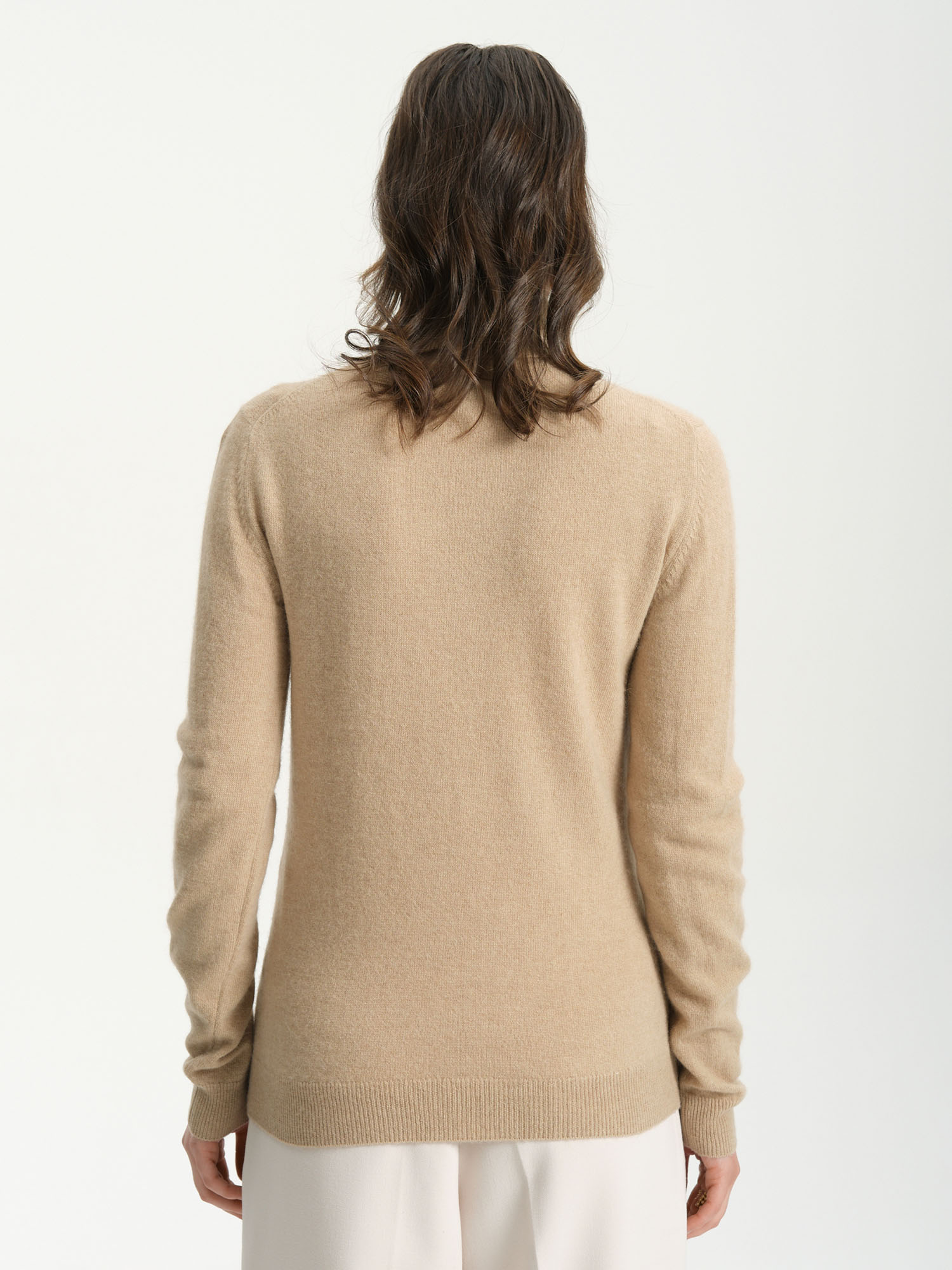 Высокий воротник аккуратно облегает шею, защищая от холода, а эластичная структура материала обеспечивает идеальную посадку по фигуре без ощущения скованности. Шерсть верблюжонка гипоаллергенна, обладает природными терморегулирующими свойствами и отличается долговечностью — даже после множества стирок изделие сохраняет форму и мягкость.