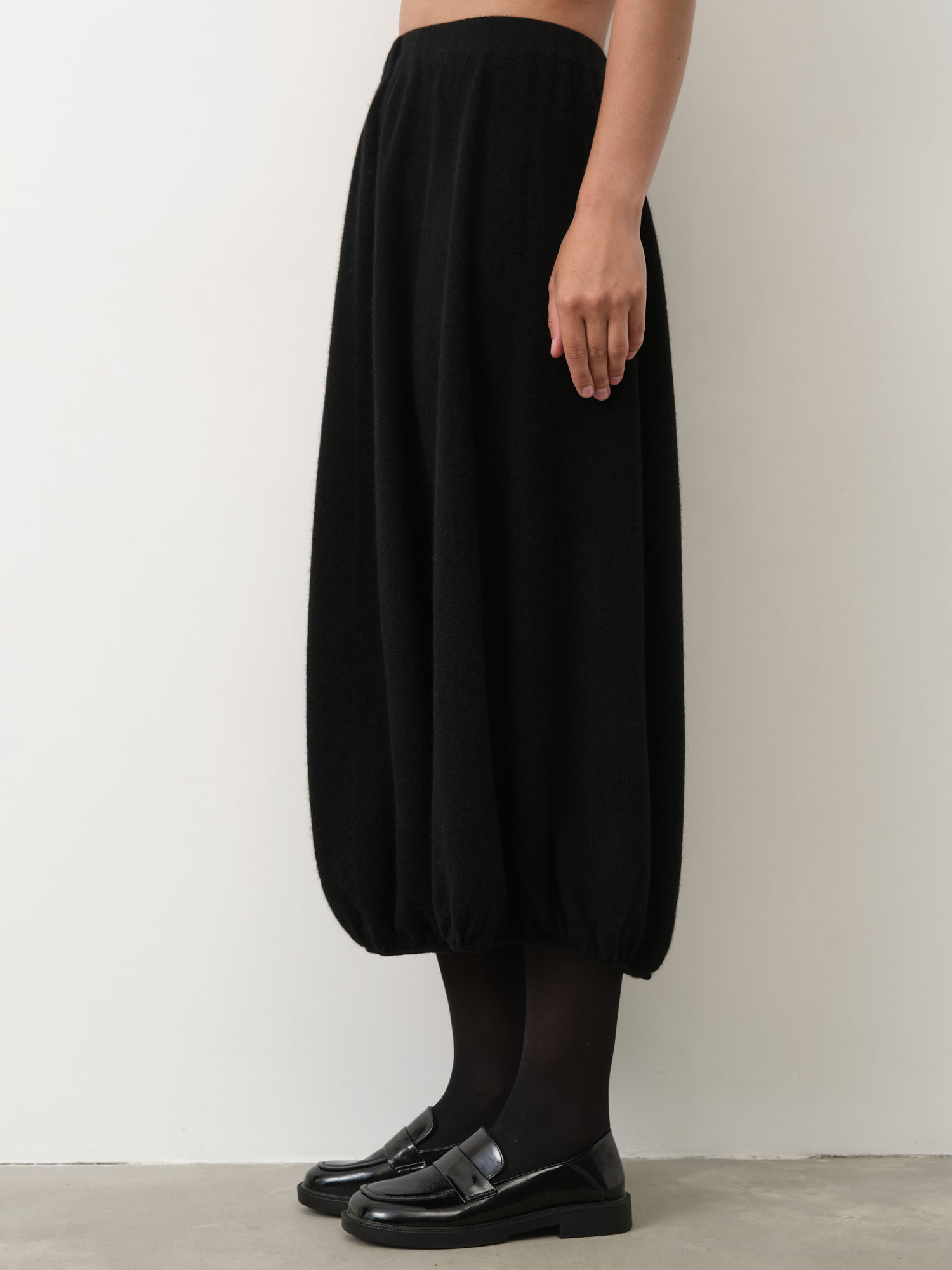 Эластичный пояс для комфортной посадки, мягкая трикотажная вязка и объёмный силуэт, обеспечивающий свободу движений. Качественная обработка краёв подчёркивает премиальность изделия.