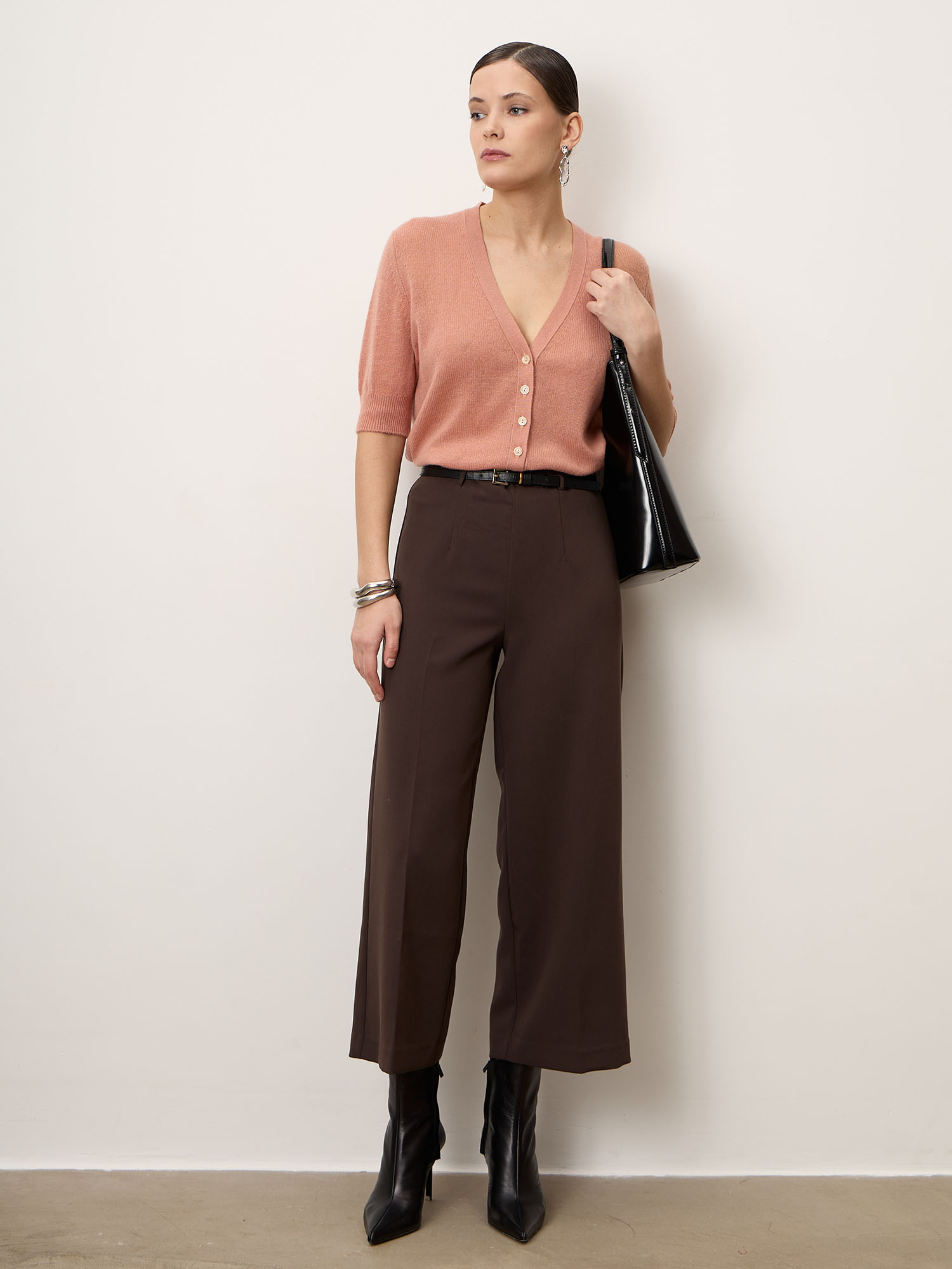 100% натуральный кашемир премиального качества — лёгкий, тёплый и невероятно мягкий. Волокно обладает высокой теплоизоляцией, воздухопроницаемостью и деликатной текстурой, приятной к коже. Материал сохраняет форму и презентабельный вид при правильном уходе.