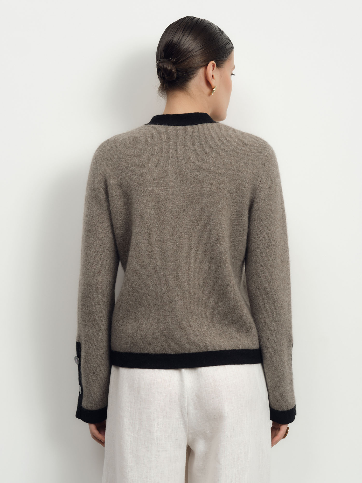 Кардиган из пуха яка — элегантная и уютная модель для повседневного и элегантного гардероба. Натуральный материал отличается мягкостью, легкостью и высокими теплоизоляционными свойствами, обеспечивая комфорт в прохладную погоду.